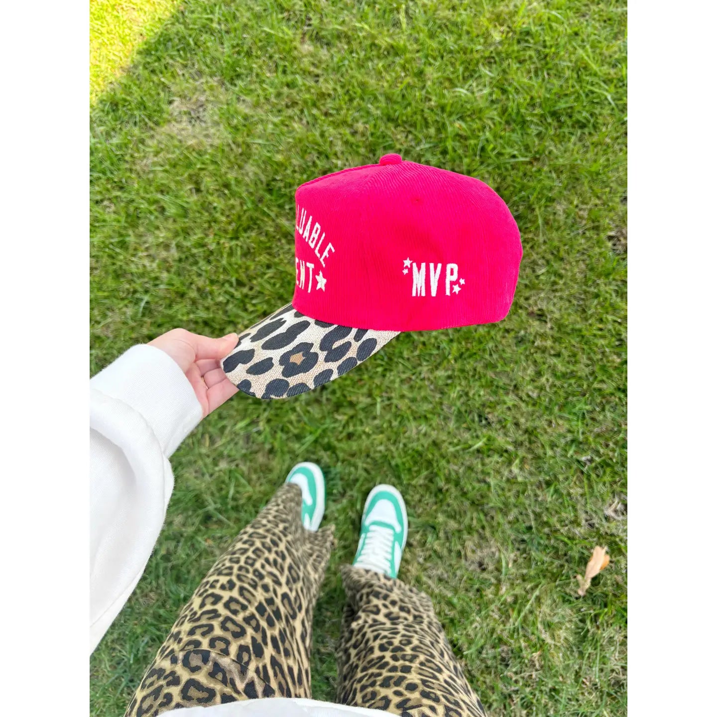• Leopard and red trucker corduroy cap