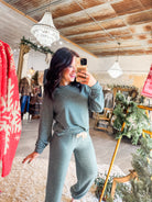 • Green & cream striped top and pant set