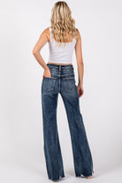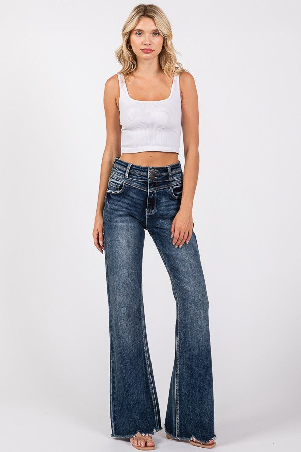 - Wide leg dark wash jeans
