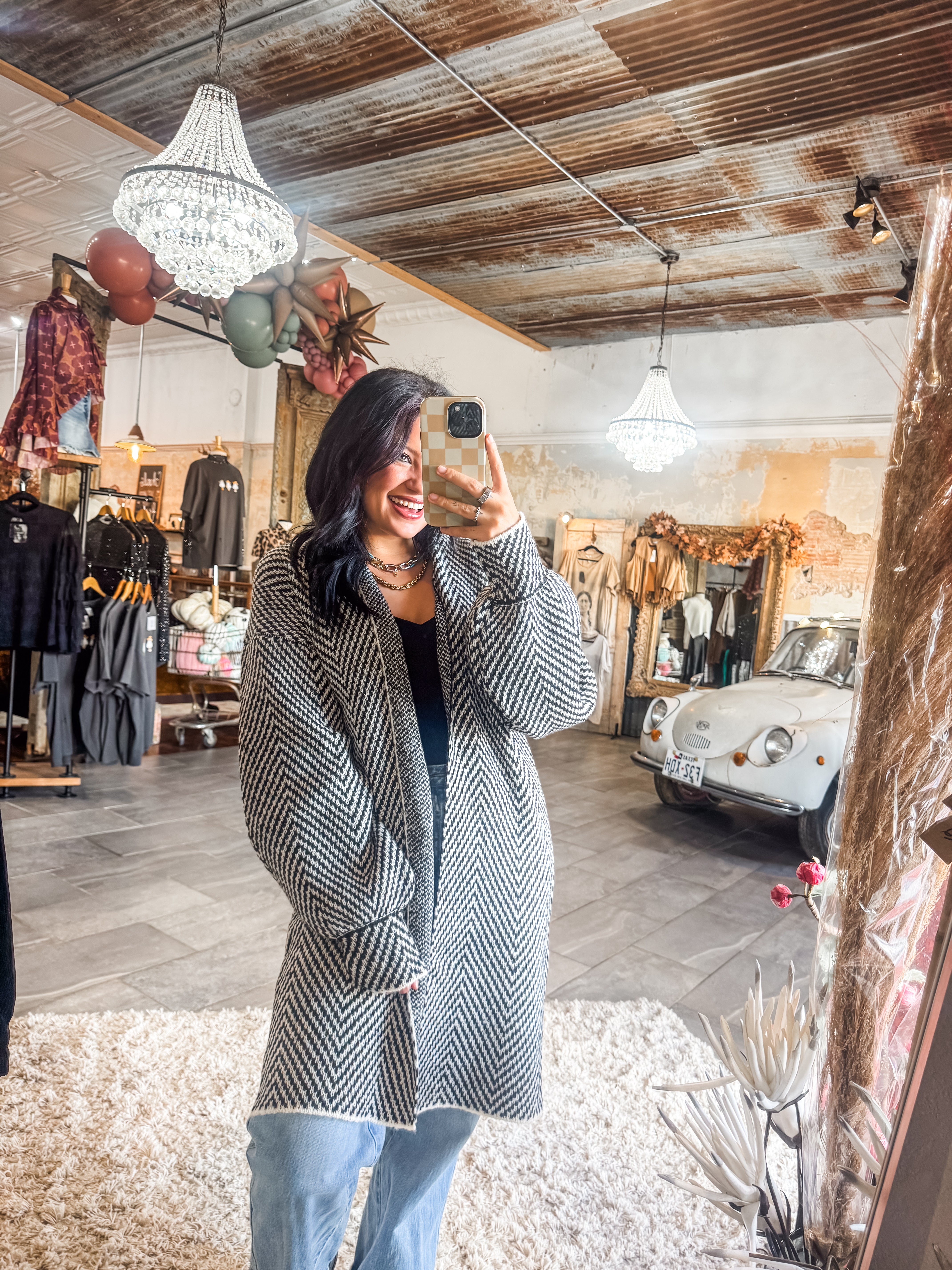 • Black & white herringbone cardigan