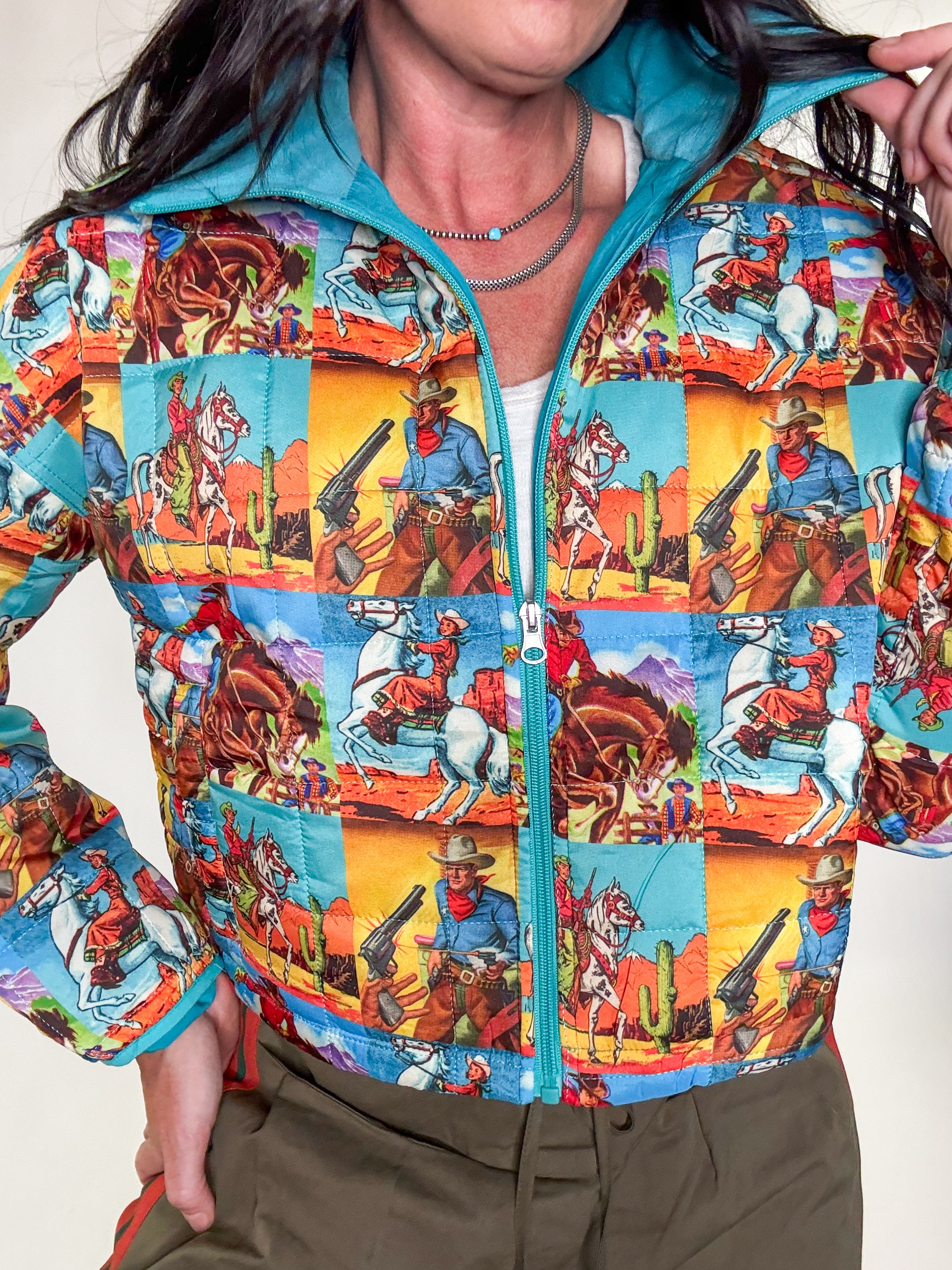 - Cowboy printed puffer jacket
