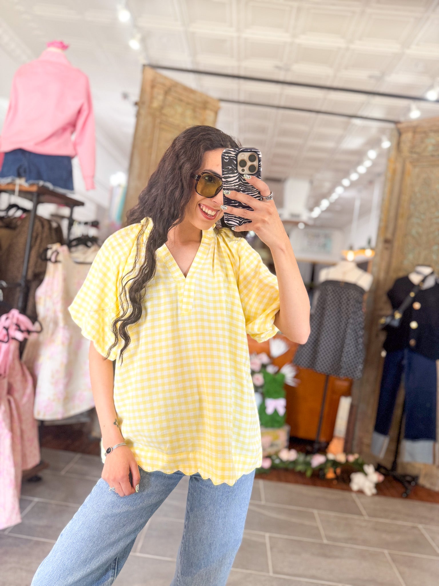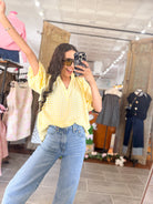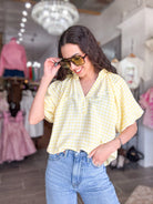 • Yellow gingham puff sleeve top