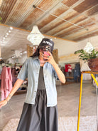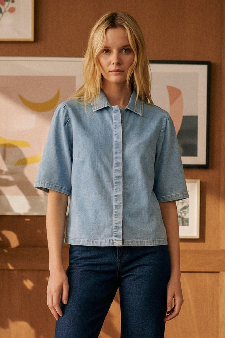 - Short sleeve collared denim top