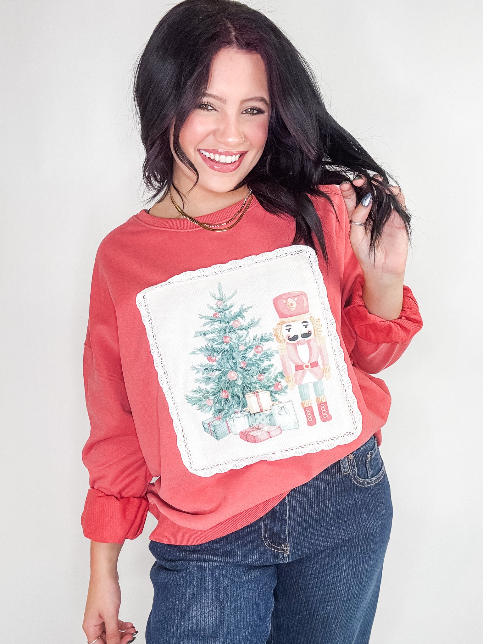 - Corduroy nutcracker patch sweatshirt