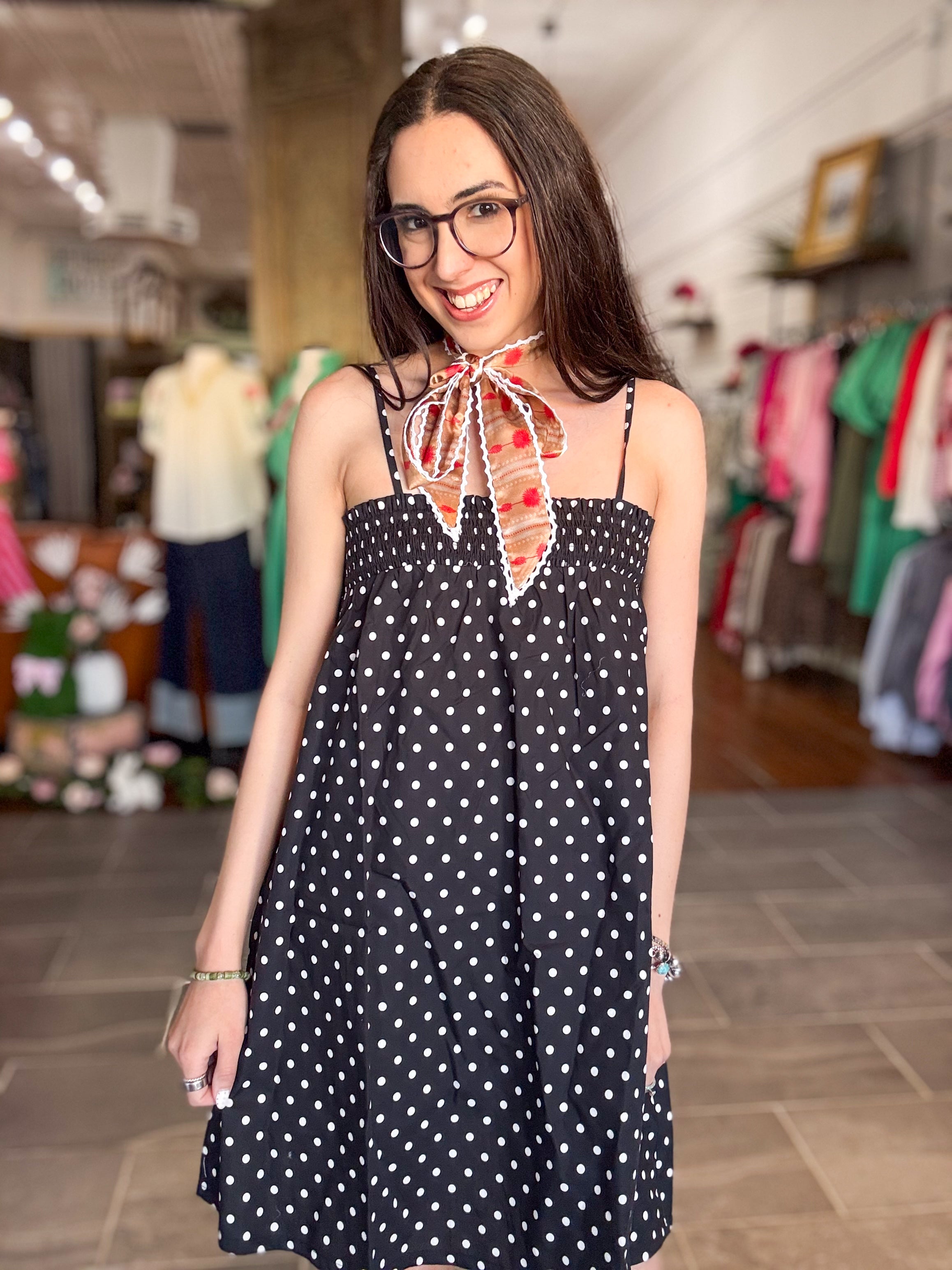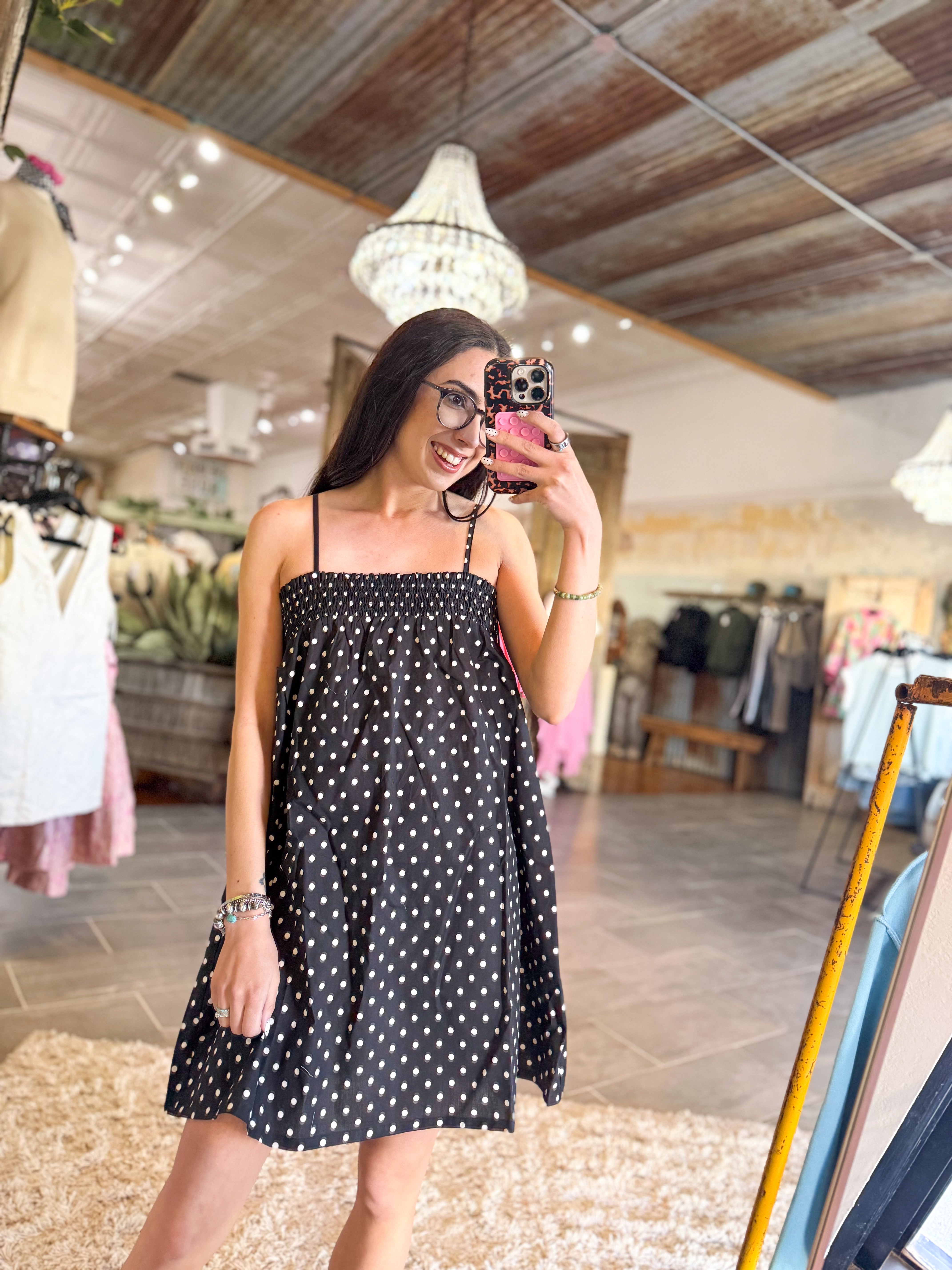 - Black & white polka dot dress