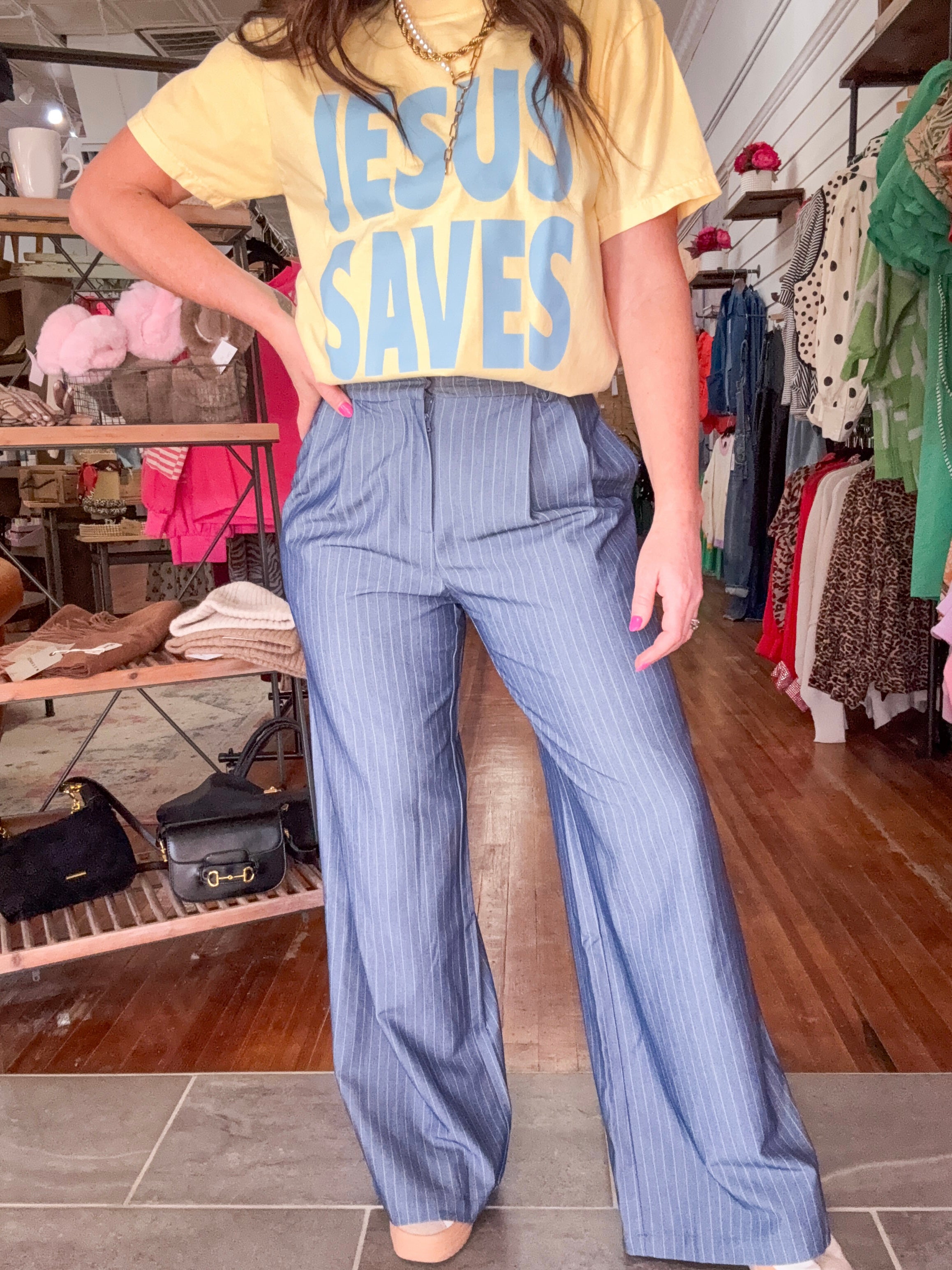 • Pinstripe wide leg pant