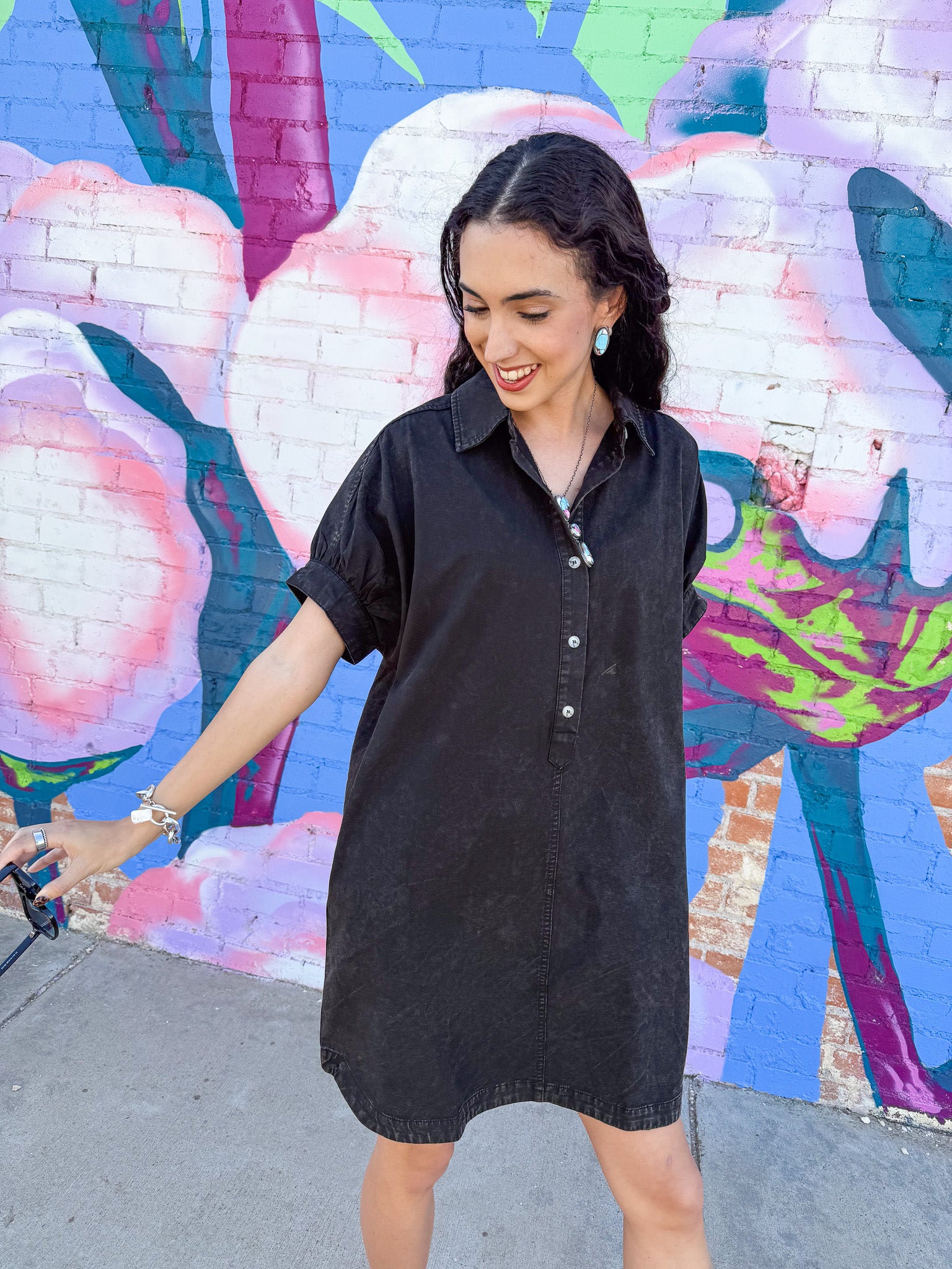 - Mineral washed shirt dress