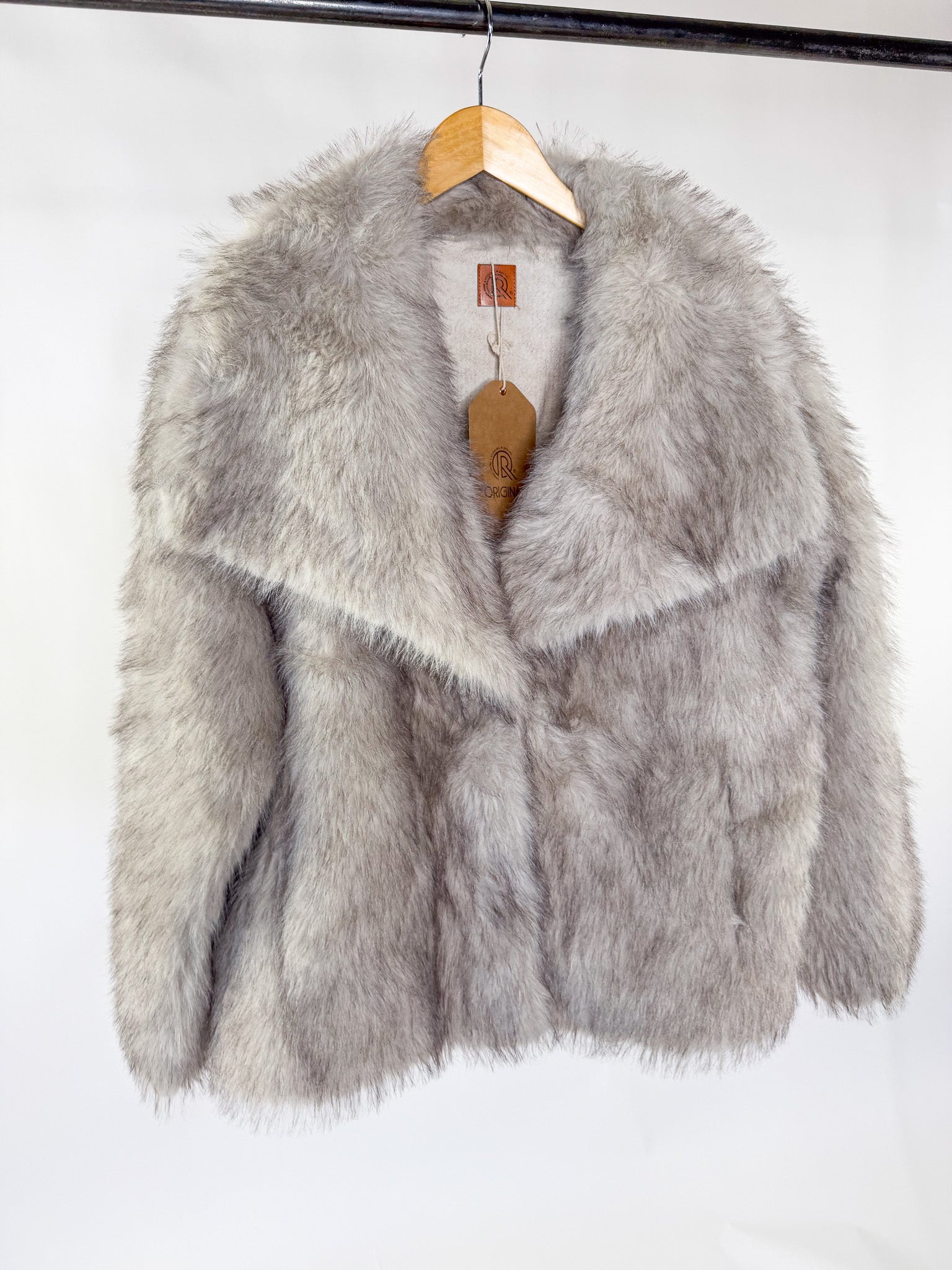 - Arctic grey and cream faux fur coat