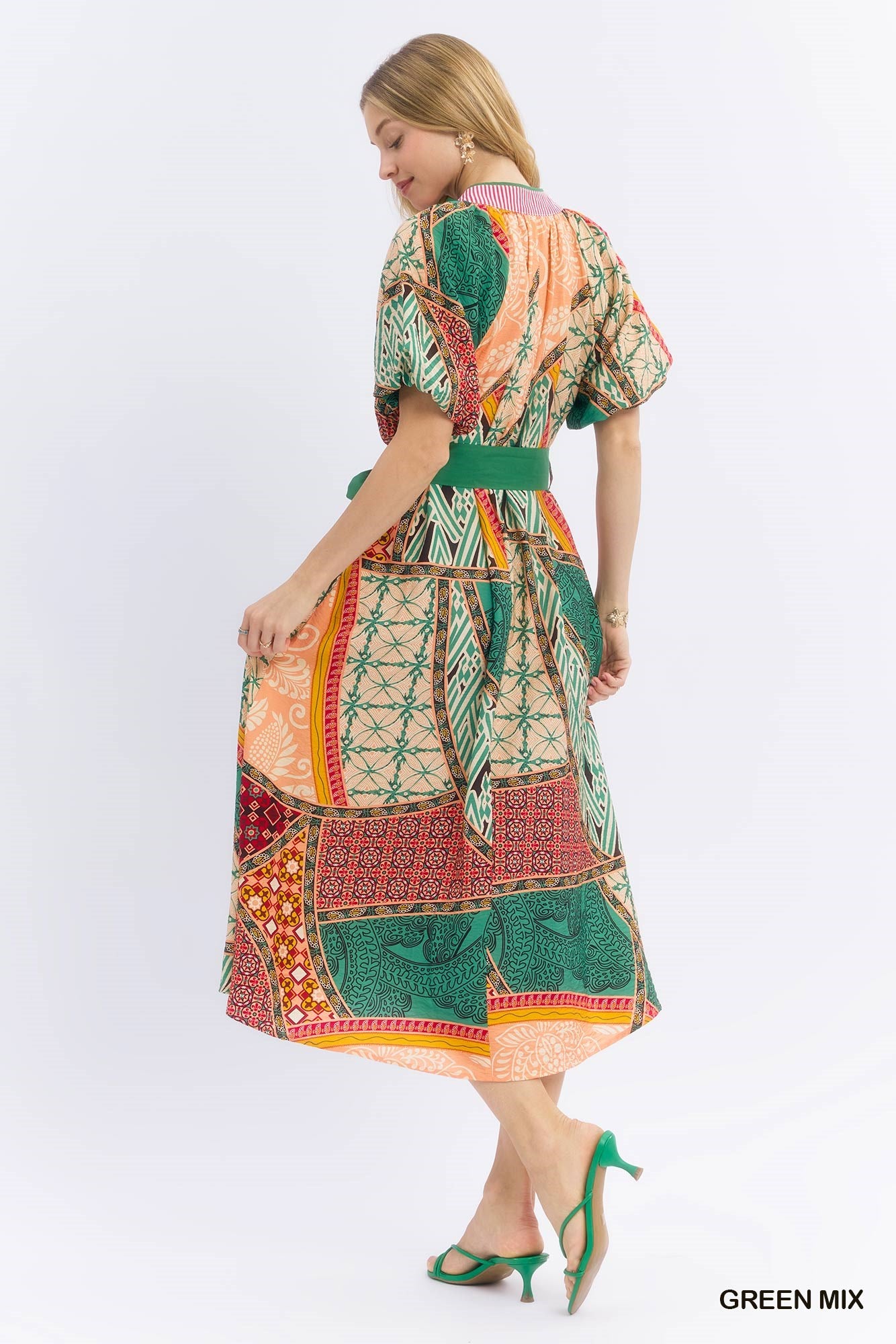 - Mix patchwork midi dress
