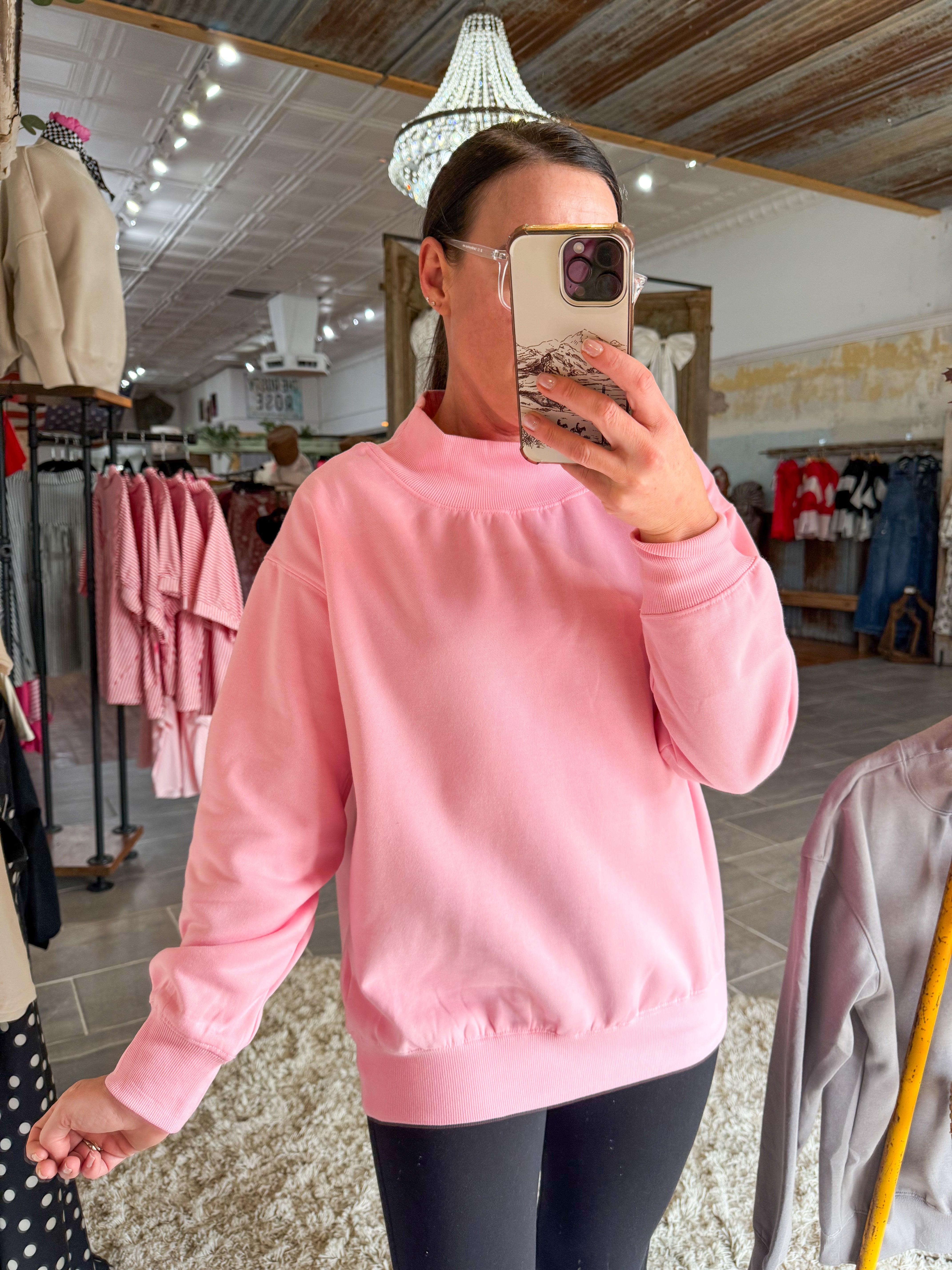 Blake Mock Neck Sweatshirt (Pink)