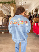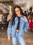 - Denim floral embroidered jacket