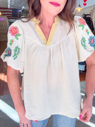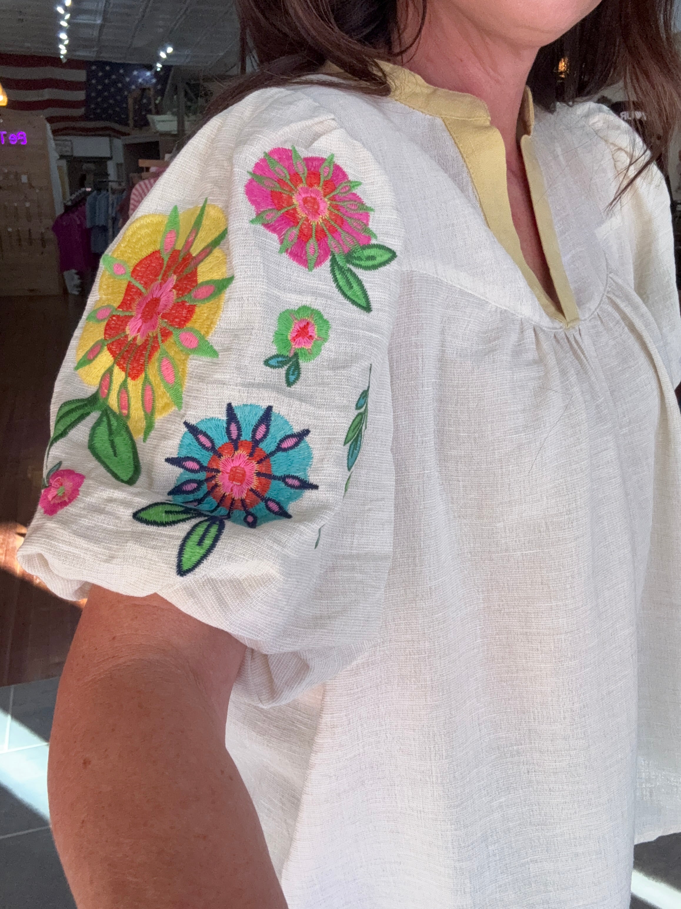 - Embroidered puff sleeve top