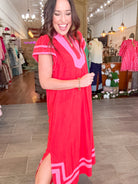 - Red & pink contrast midi dress