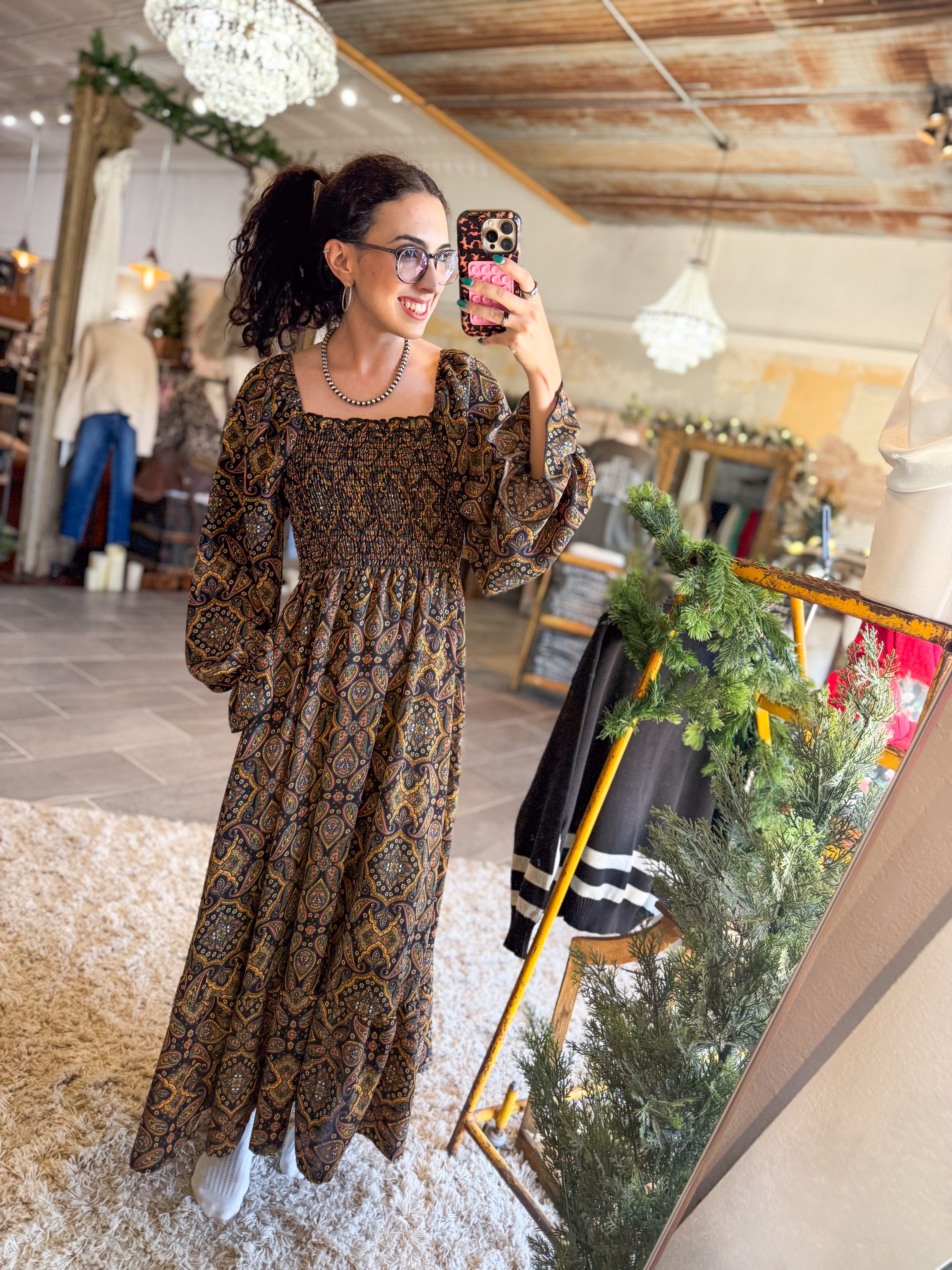 - Paisley printed maxi dress